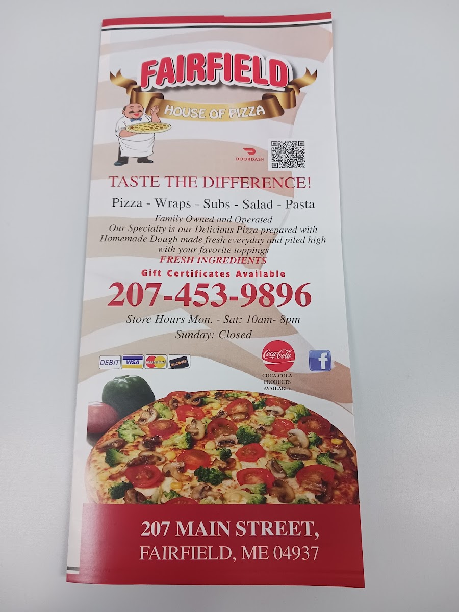 Fairfield House of Pizza Menu